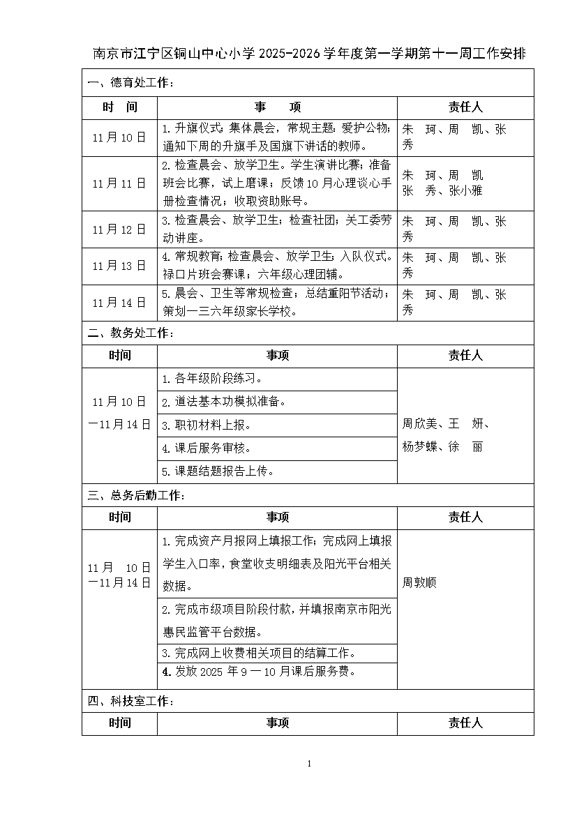 南京市江宁区铜山中心小学2025-2026学年度第一学期第十一周工作安排